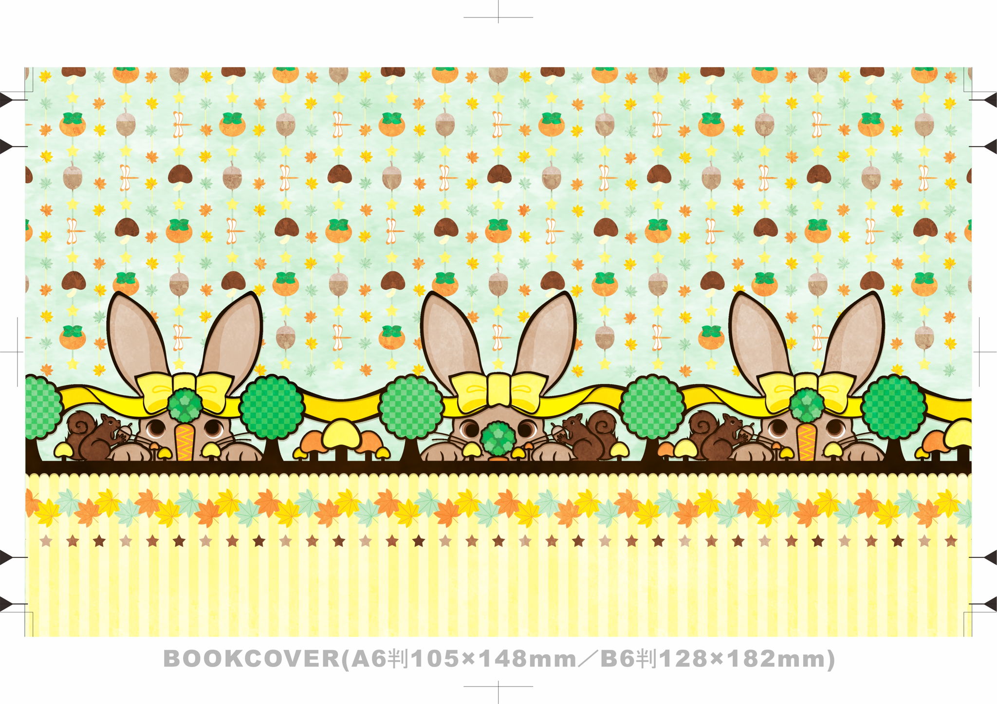 秋のブックカバーデザイン「兎と栗鼠」(B4サイズ印刷用/A6判105×148mm,B6判128×182mm/JPEG300dpi)