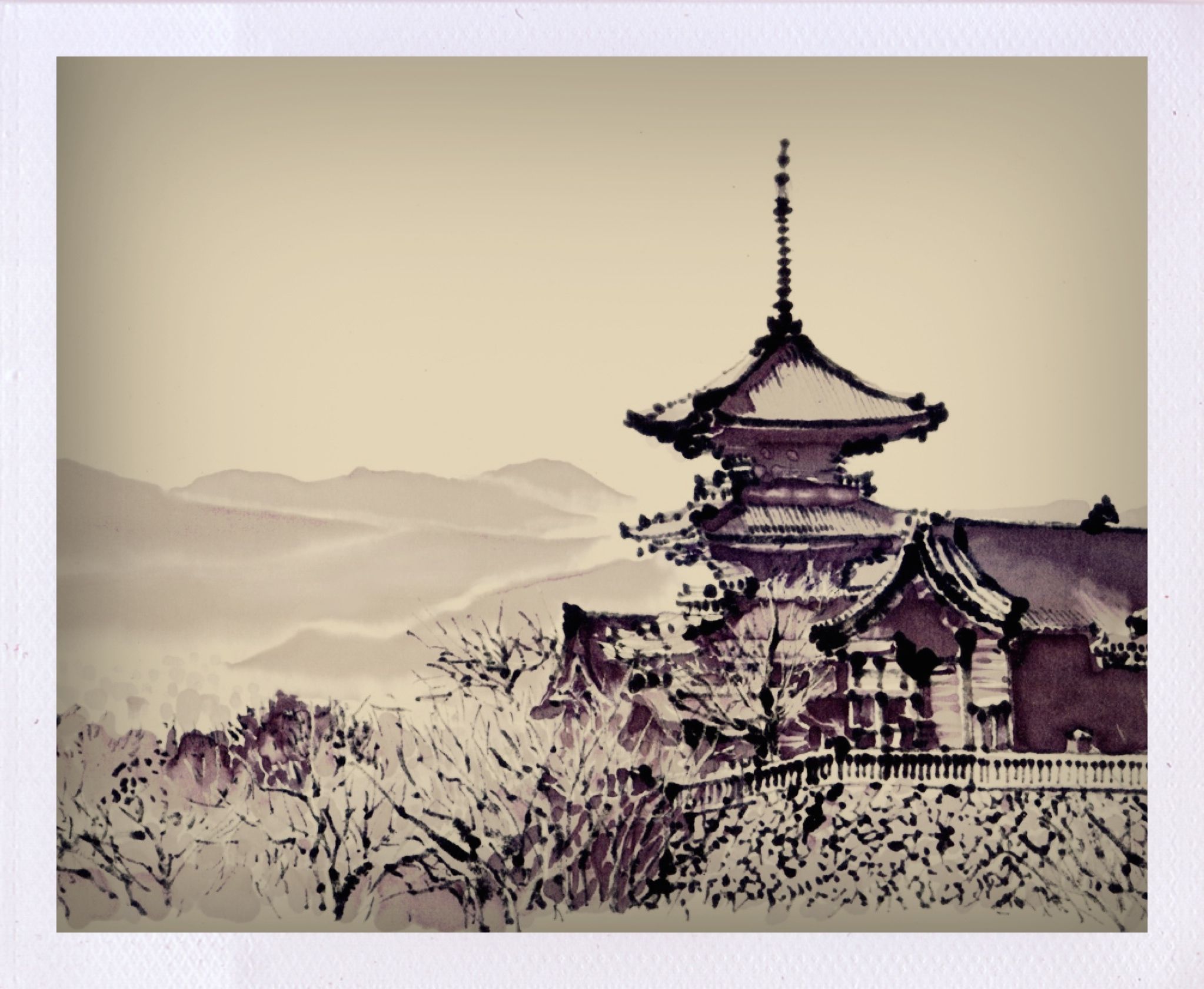 京都で開かれた学術会議のための日程パンフ用水墨イラスト