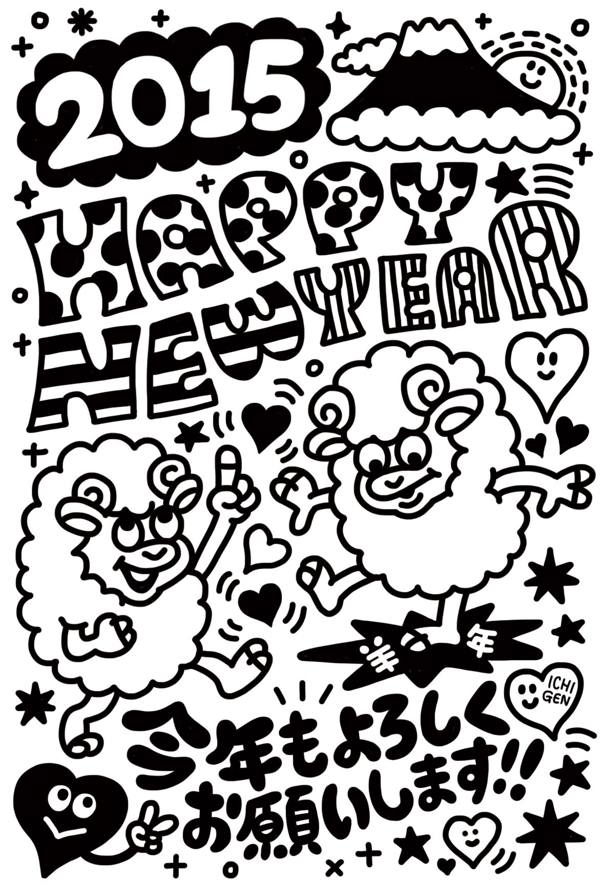2015年賀状B(白黒バージョン)