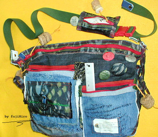 祖母の紬とデニムとコルクなショルダー@w34.5h29.5shoulder70-81cm