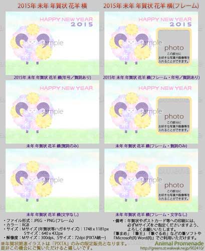 2015年 未年 年賀状 花羊 横(フレーム・年号/賀詞あり)