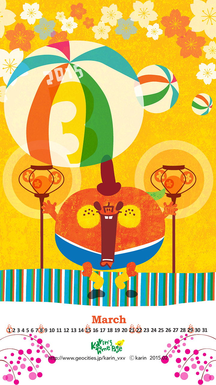 2015.3月のカレンダー付きカベガミ。
