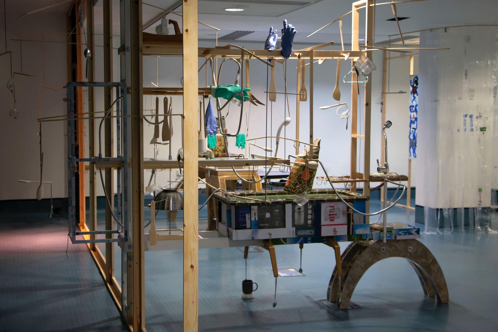 Stirring Sink is a kinetic sculpture, built in 2019 and originally shown as part of an exhibition, 'Sentient Home Devices'.