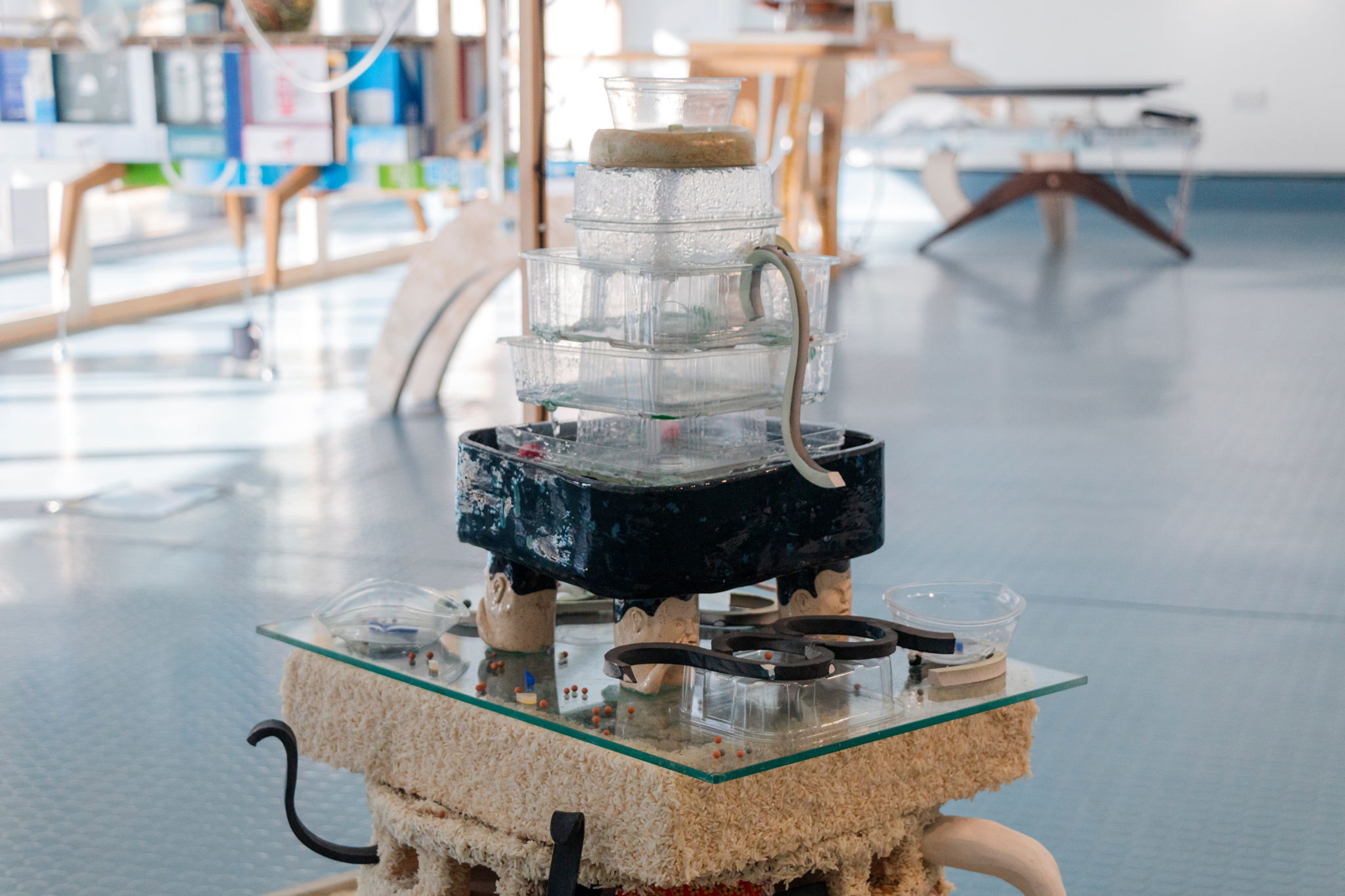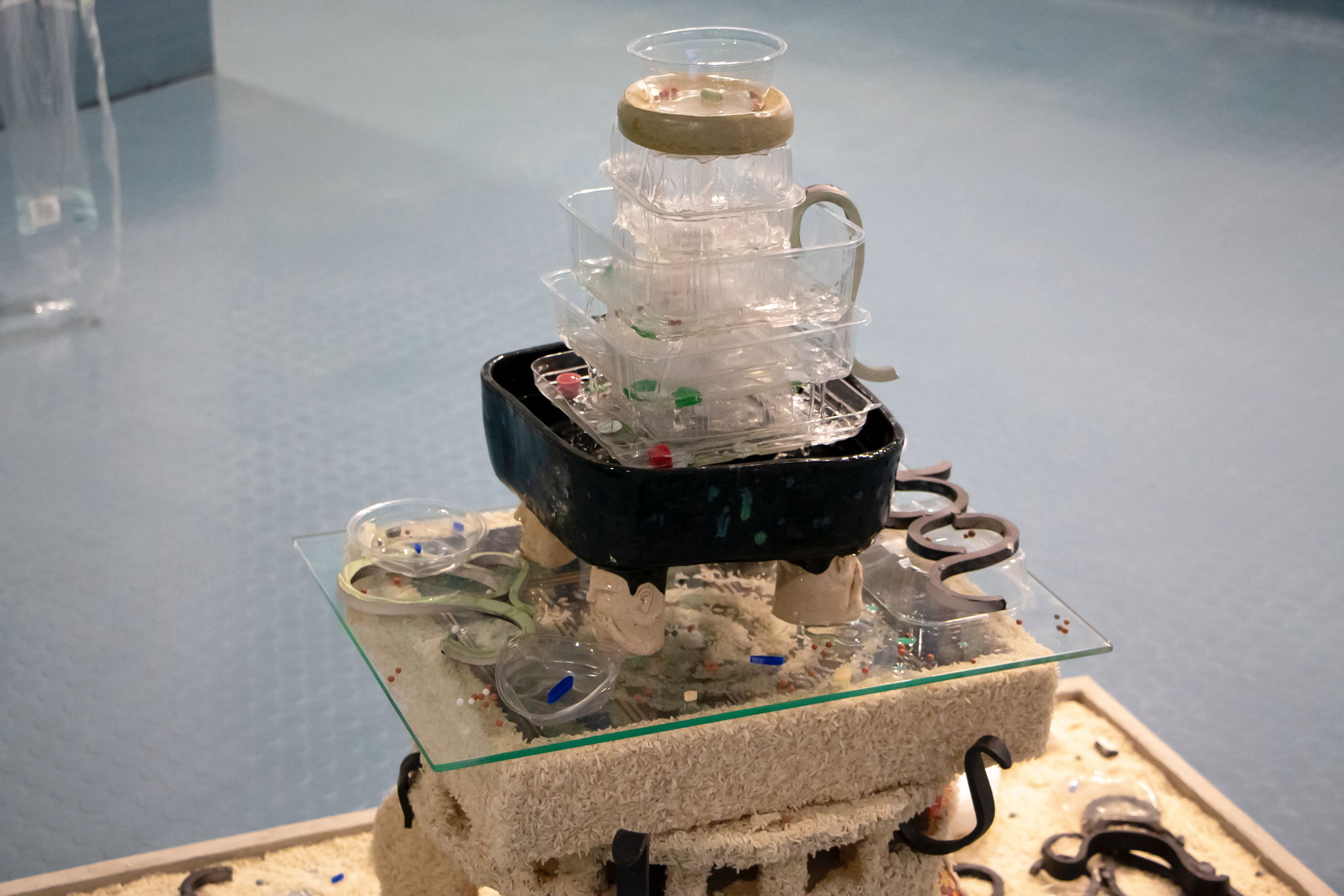 In light of the recent revelation that many of the items we put into recycle bins in the UK still end up being shipped to other countries for landfill, Snack Fountain is an ode to disposable food containers, an attempt to give them the respect they deserve, rather than being immediately discarded.