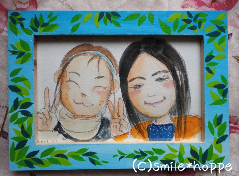 ポストカード画用紙 透明水彩 木製額 アクリル絵の具