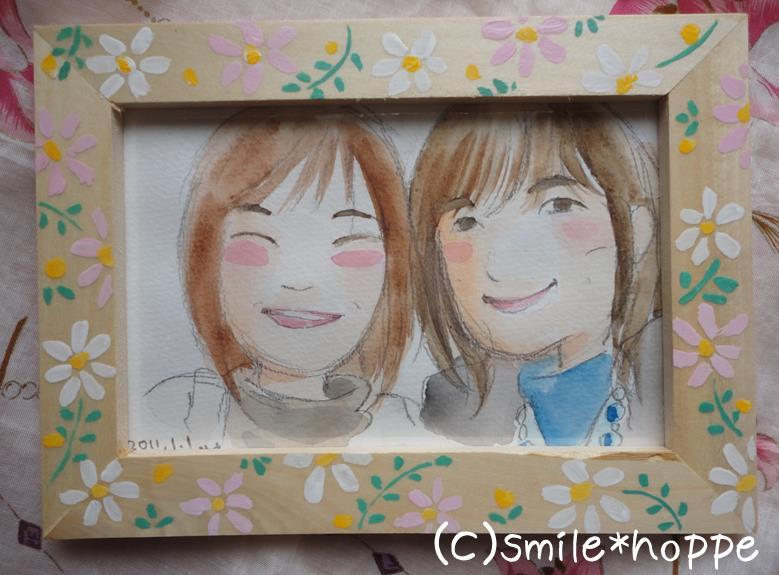 ポストカード画用紙 透明水彩 木製額 アクリル絵の具
