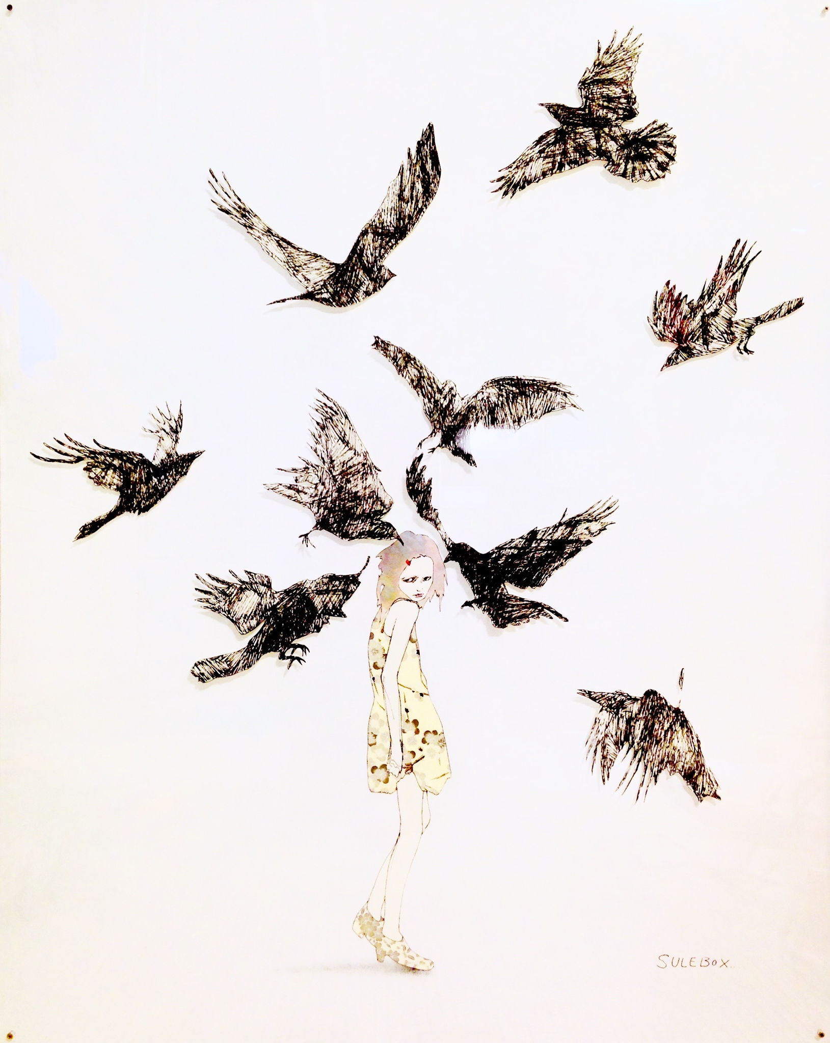 /アクリル、和紙、製図ペン