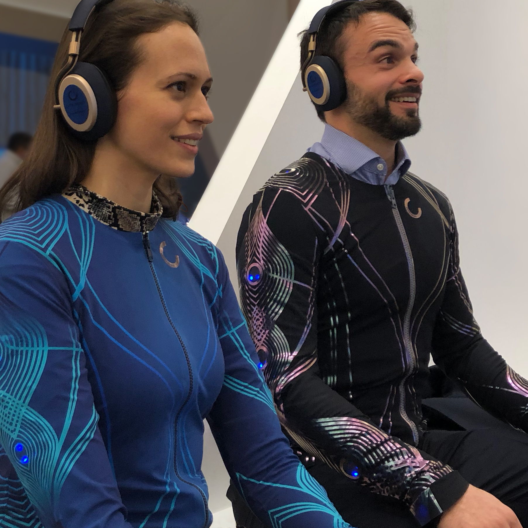 Two users trying the SoundShirt at the World Economic Forum in Davos Switzerland