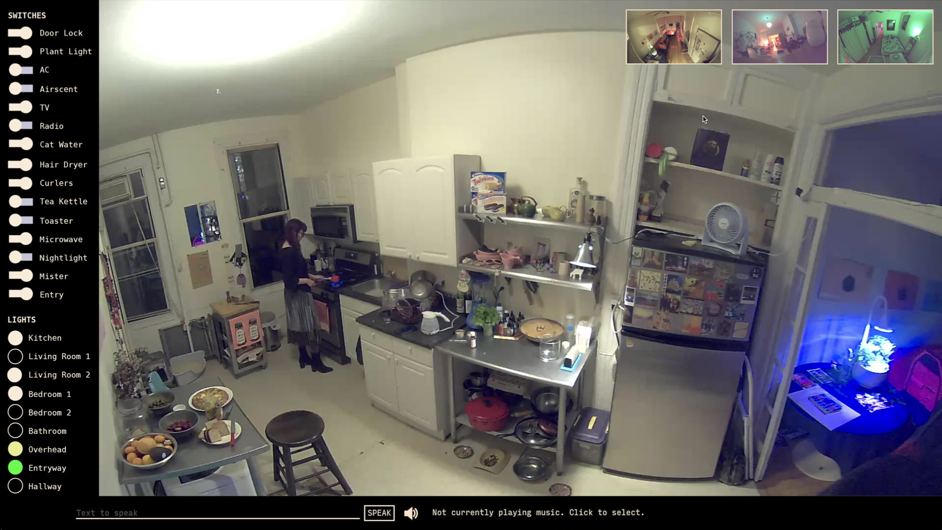 I attempt to become a human version of Amazon Alexa, a smart home intelligence for people in their own homes. The performance lasts several days. It begins with an installation of a series of custom designed networked smart devices (including cameras, microphones, switches, door locks, faucets, and other electronic devices). I then remotely watch over the person 24/7 and control all aspects of their home. I aim to be better than an AI because I can understand them as a person and anticipate their needs. The relationship that emerges falls in the ambiguous space between human-machine and human-human.