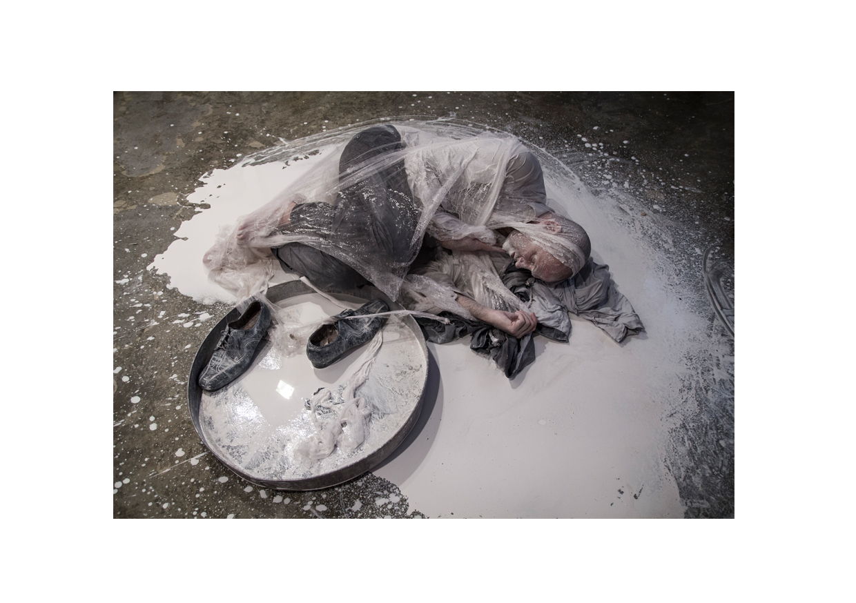 Suit.Case project is a site specific, ceremonial performance installation, inspired by ceremonies of ancient & tribal cultures; a roar of the re-born body from under the suits imposed on us by cultures - an immersion into 100 liters of paint in a quest for the nucleolus of our being - releasing the dance of the unsuited soul.