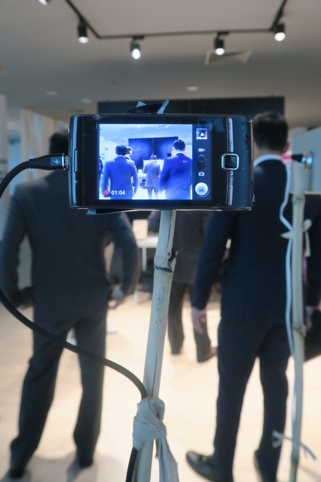 The experience of the installation is curated in a way that allows viewers to respond and relate by seeing themselves mirrored in the installation, via their device screens with their front cameras on as they walked through the installation. All the cameras and screens on each device streamed different images from either the front camera or the back. As all devices were directed at different angles, they were not only mirroring the response of viewers within my installation space but also (unknown to the other visitors) the activity by the visitors that were interacting with the installations by the other artists within the vicinity.