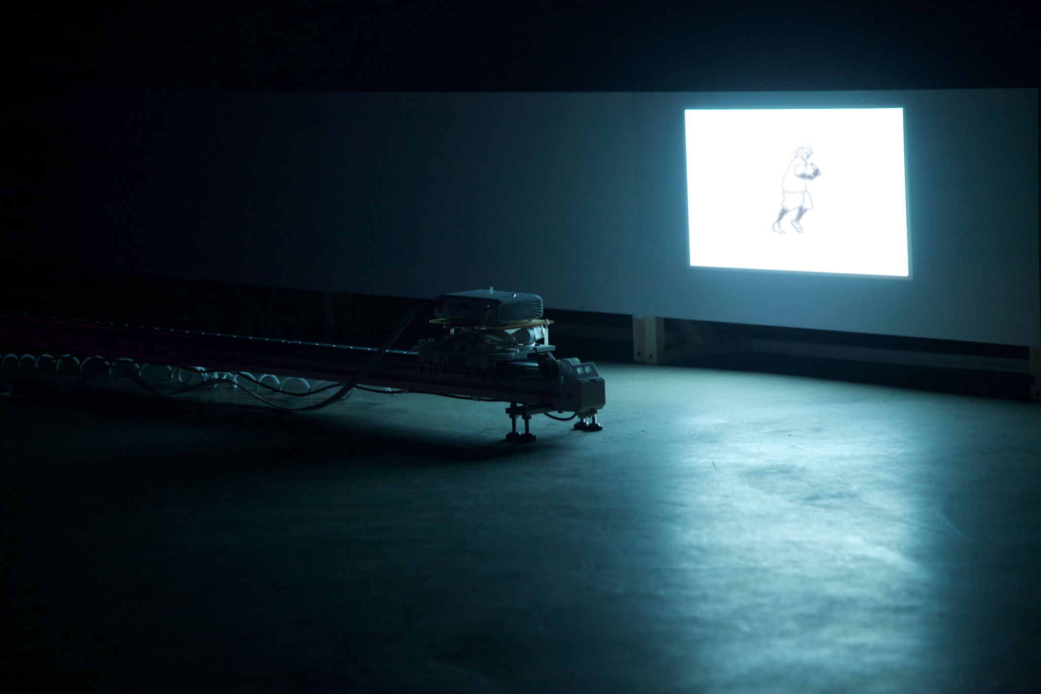 I imagine that the animation itself does not only appears on the image but also acts in concert with the relationship between site and installation, forming a trail of the process of animating. Meanwhile, it changes the movement between projection and animation itself.