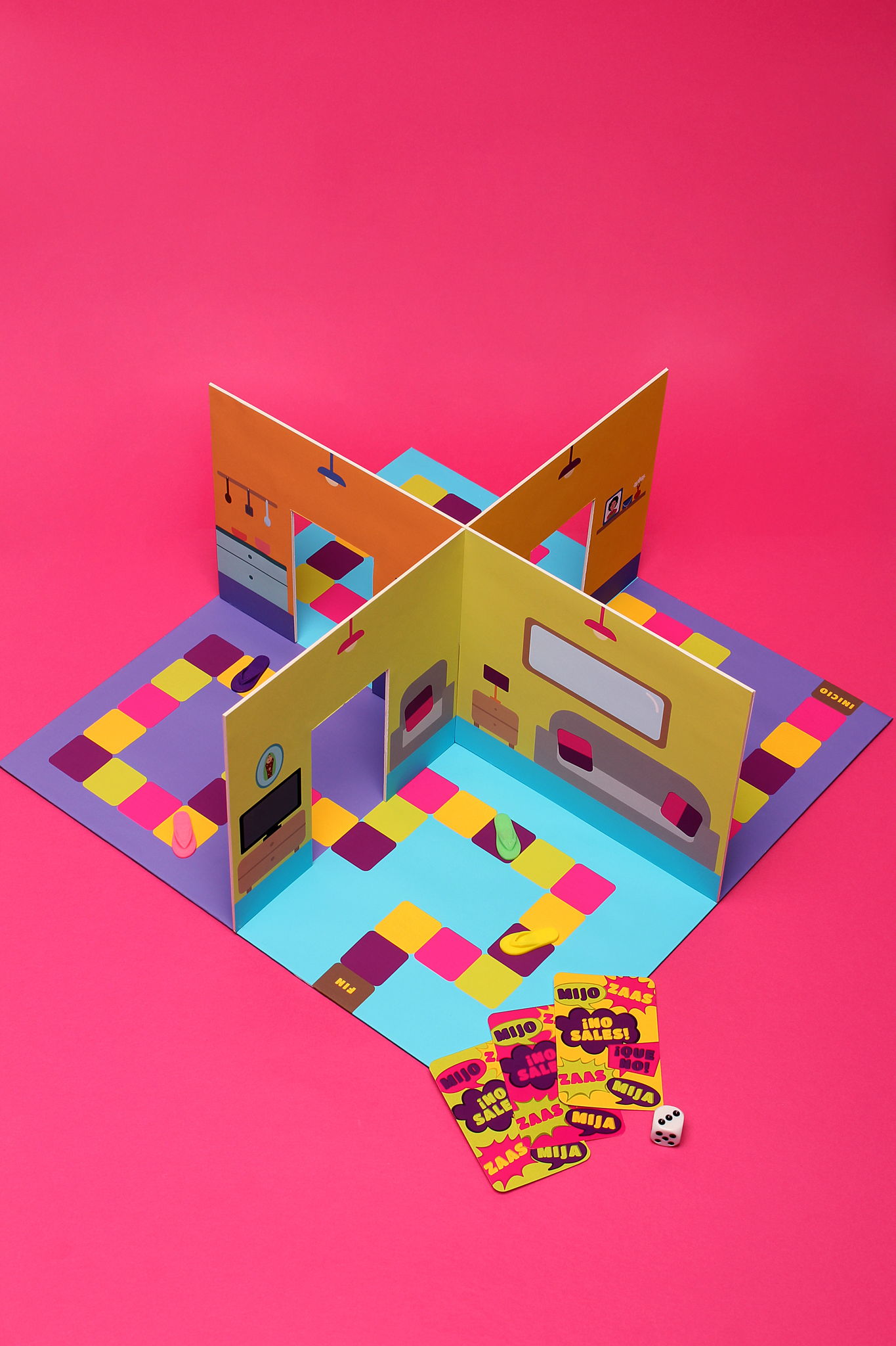 La Chancla is a board game inspired by Mexican culture. It's a running joke that an angry mexican mother always has slippers on and when she gets upset with her children she uses one of her slippers as a boomerang to playfully hit and scold her kids. It's not supposed to be aggressive, it's supposed to be humorous and endearing.