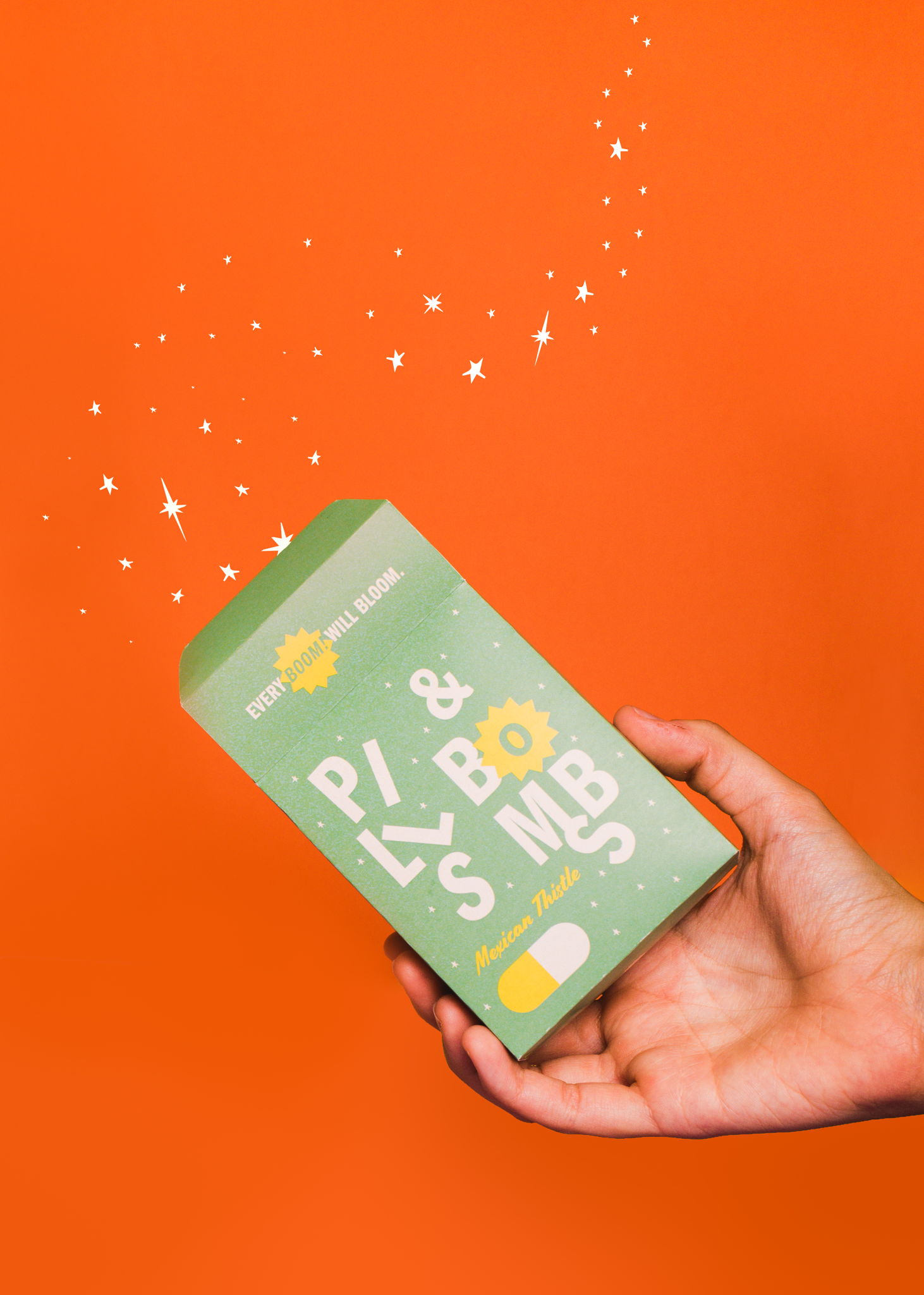 Pills&Bombs is a personal project that tackles the problem of concrete cities, spaces that lack life and oxygen. Seed bombs are commonly used by guerrilla gardeners, they are popular in some cities in the US and the UK, but not in many other places. I wanted to create a product that encouraged the activity of guerrilla gardening and made it a more common practice.