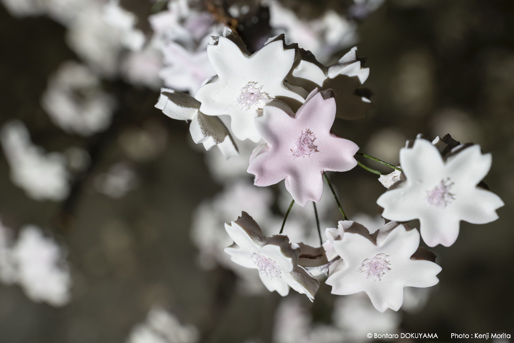 Video, someiyoshino-cherry tree, uiro-japanese rice jelly, watercolor paints, food coloring, paper wrapped wires, soil