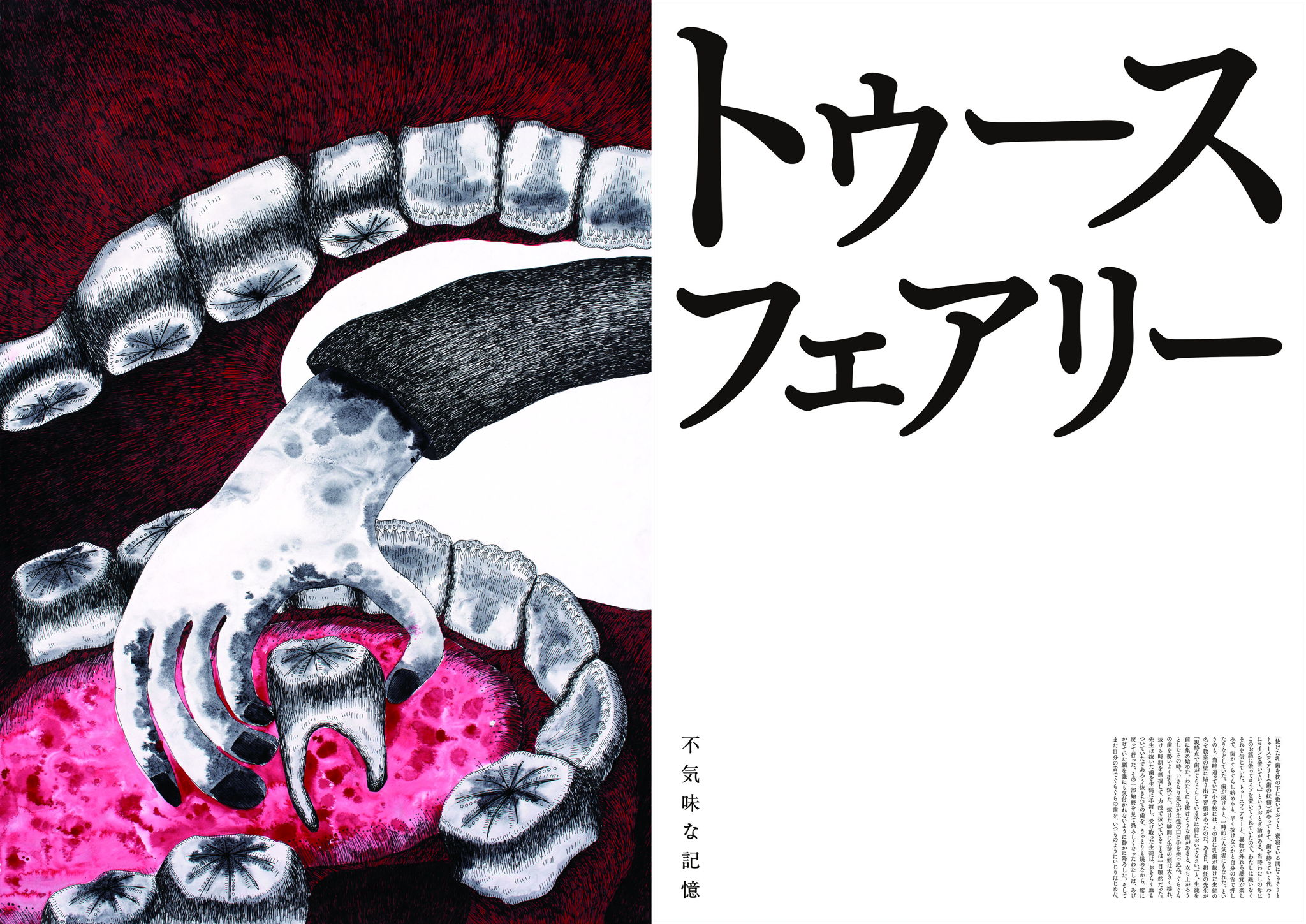 「抜けた乳歯を枕の下に敷いておくと、夜寝ている間にこっそりとトゥースフェアリー(歯の妖精)がやってきて、歯を持っていく代わりにコインを置いていく。」というおとぎ話がある。当時わたしの母はこのお話に倣ってコインを置いてくれていたので、わたしは疑いなくそれを信じていた。トゥースフェアリーと、異物が外れる感覚が楽しみで、歯がぐらぐらし始めると、早く抜けないかと自分の舌で押してみたりなどしていた。歯が抜けると、一時的に人気者にもなれた。というのも、当時通っていた小学校には、その月に乳歯が抜けた生徒の名を教室の壁に貼り出す習慣があったのだ。ある日、担任の先生が「現時点で歯がぐらぐらしている子は前においでなさい。」と、生徒を前に集め始めた。わたしにも抜けそうな歯があると、立ち上がろうとしたその時。いきなり先生が生徒の口に手を突っ込み、ぐらぐらの歯を勢いよく引き抜いた。抜けた瞬間に生徒の頭は大きく揺れ、抜ける時期を無視して、力技で抜いていることは一目瞭然だった。先生は抜いた歯を生徒に手渡し、受け取った生徒は、おそらく血もついていたであろう抜き立ての歯を、うっとりと眺めながら、席に戻って行った。その一部始終を見て恐ろしくなったわたしは、あげかけていた腰を誰にも気付かれないように静かに降ろした。そしてまた自分の舌でぐらぐらの歯を、いつものようにいじりはじめた。