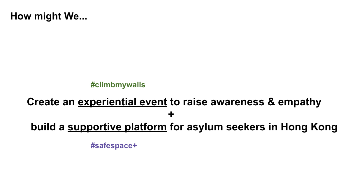 How might we create an experiential event to raise awareness and empathy, and build a supportive platform to help asylum seekers in Hong Kong? We need to start from an empathetic medium, an activity which is also a physical translation of the mental sufferings.