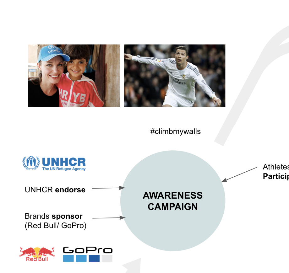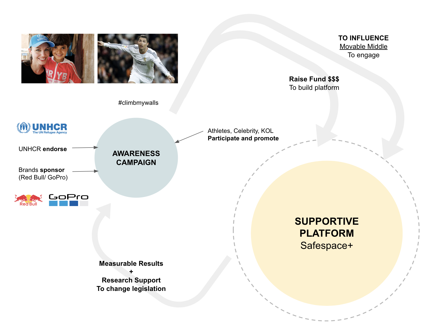 After the exciting event, Lee Wai Sze raises 500K. This will not go to the asylum seeker directly through NGO. Instead, this will be used to fund the first phase of building a supportive online platform where givers (donors or "secret angels") and receivers (seekers) can be matched. The data collected on the platform can also be used to measure the impact, the value created, the waste reduced in this giver and receiver relationship. These measurable outcome will then translate into another physical challenge for another celebrity. And then the cycle repeats. Local Climb my walls event can also involve local people in the fun.