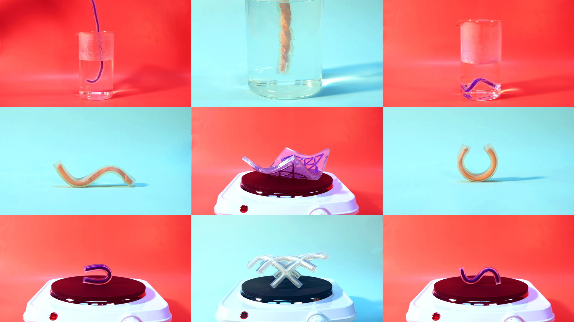 Inspired by nature’s ability to adapt, Re:flex is an accessible and affordable smart material that can move and change its shape in response to heat. It is the result of multidisciplinary, experiment-driven research that aims to translate technologies normally reserved to aerospace and aeronautics into everyday applications. Re:flex allows the creation of objects that can be reshaped and reused to suit their owner’s needs, providing an alternative to single-use plastic and extending the life of products.