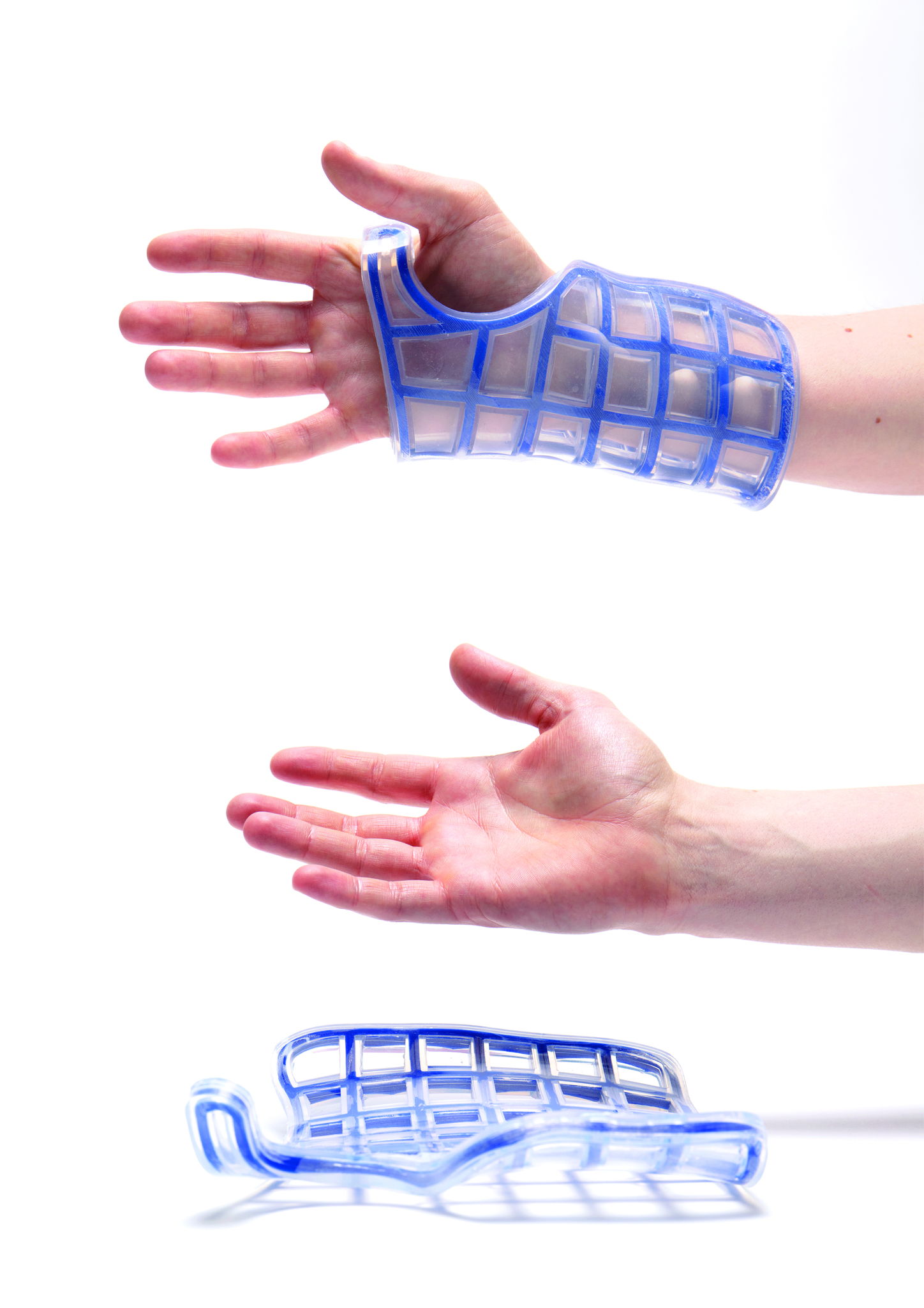 Arm cast made from re:flex that can be easily applied, removed and reused.