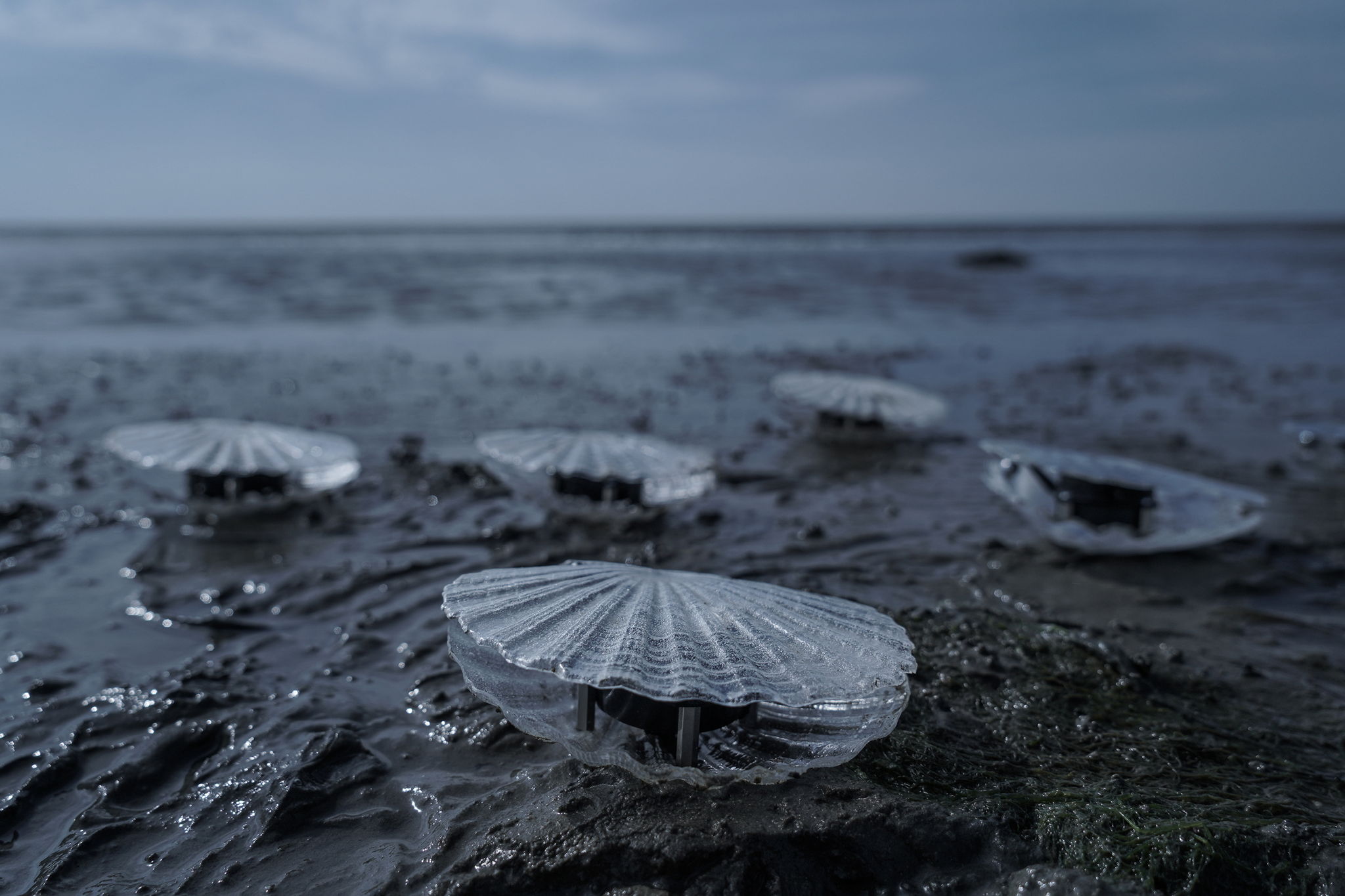 Real-time data is streamed by a sensor and converted into an audio signal. The audio signal generates a live evolving soundscape which initiates the opening and closing movements of the Clam sculptures. Sound and motion unite to create an experience that allows the audience to see and hear the water quality in real-time.