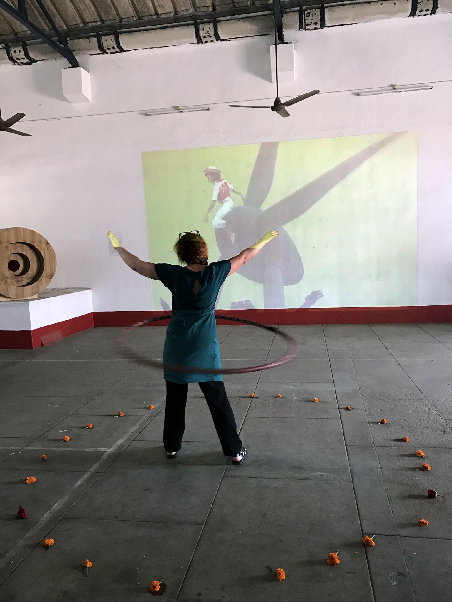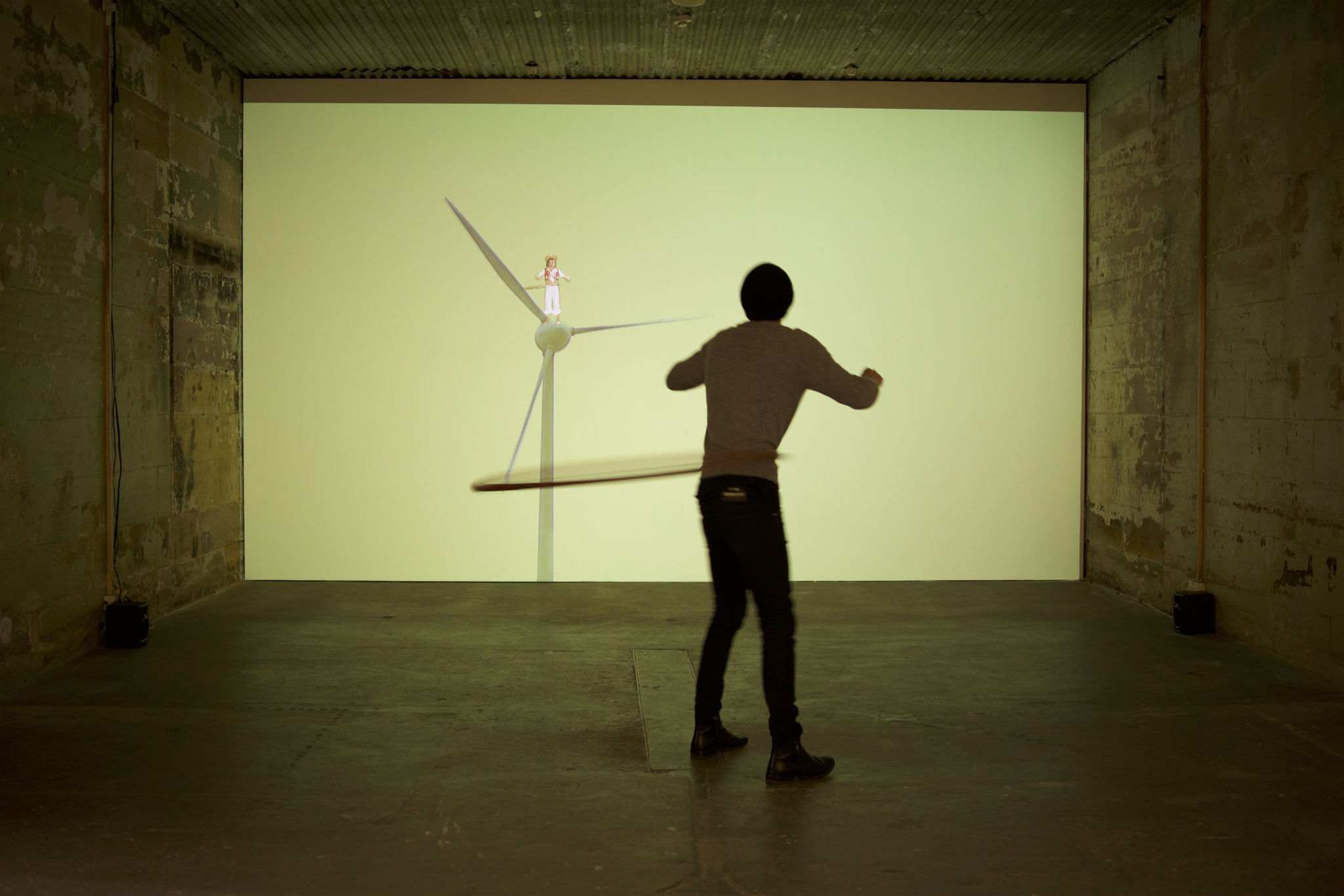 Users must hula hoop to get video (sound and vision) to play. Instead of sitting still, you can “drive” video and sound playback using a custom hula-hoop.