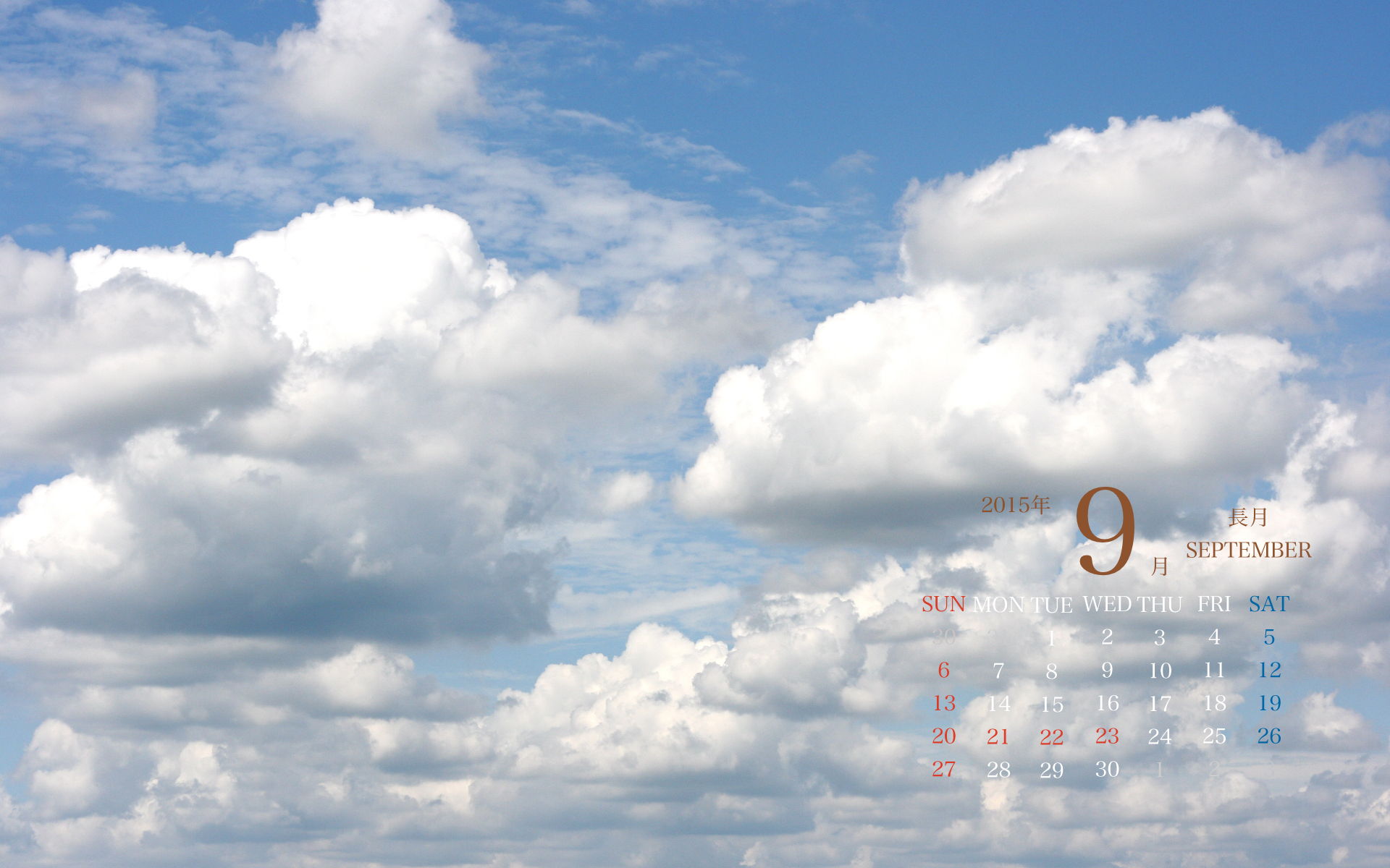 2015年9月PC壁紙(カレンダー付き)1(1920×1200)