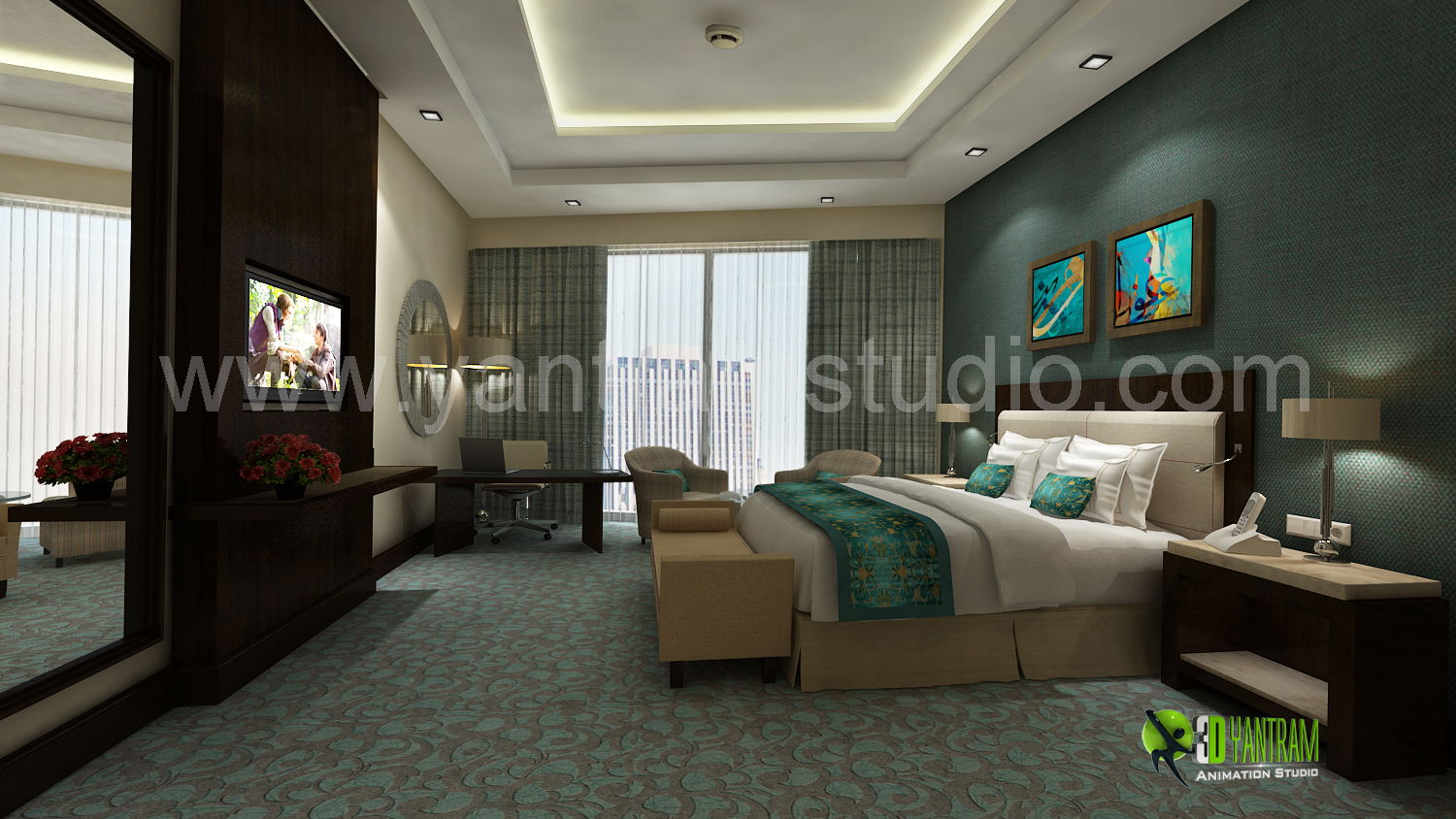 Creative 3D Photo Realistic Interior Hotel Bedroom Design
