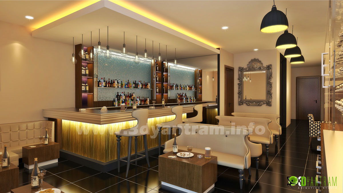 Bar interior designers have to organize a plan like any other process. The interior designing process can take a long time depending on the expectations of the bar owner. It is important to remember that the location of the lounge is part of what makes a bar successful. Yantram Studio 3D Interior Rendering Bar Design provide with 3D Interior Visualization, 3D Interior Architectural Designers.