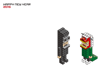 お馴染みブロック年賀 2016年はサルです