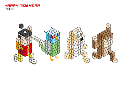 お馴染みブロック年賀 2016年はサルです