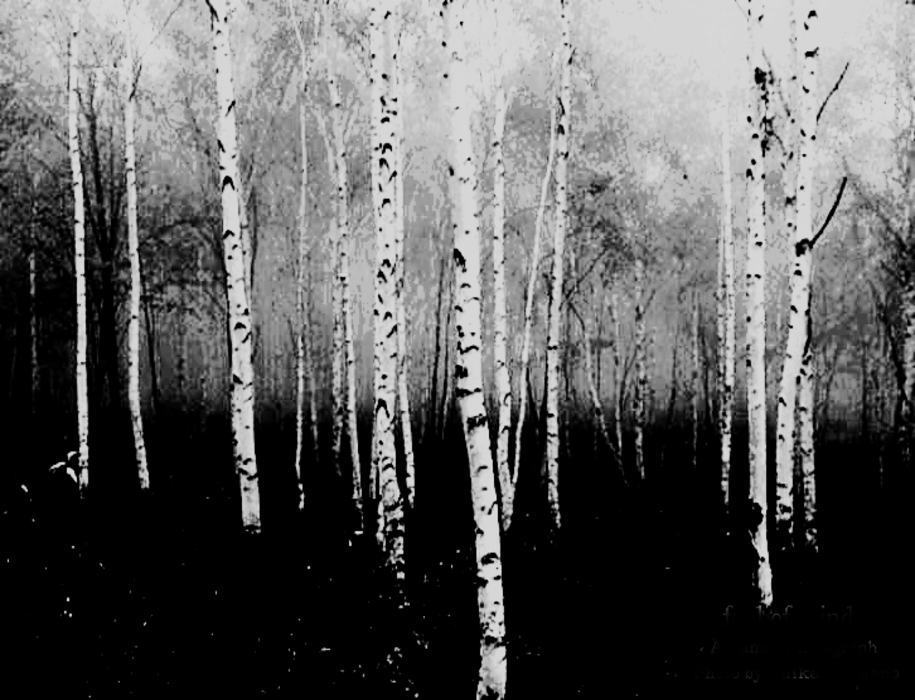 朝霧の白樺林