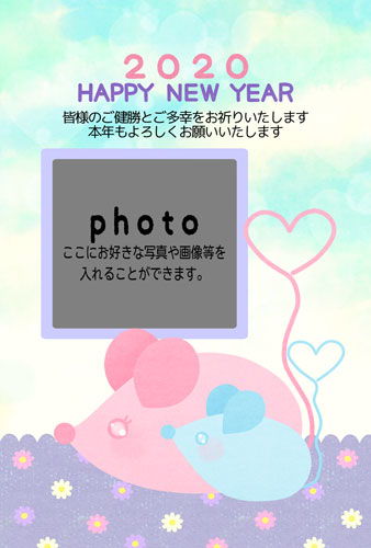 2020年 子年年賀状2「ネズミの親子」(普通年賀状)