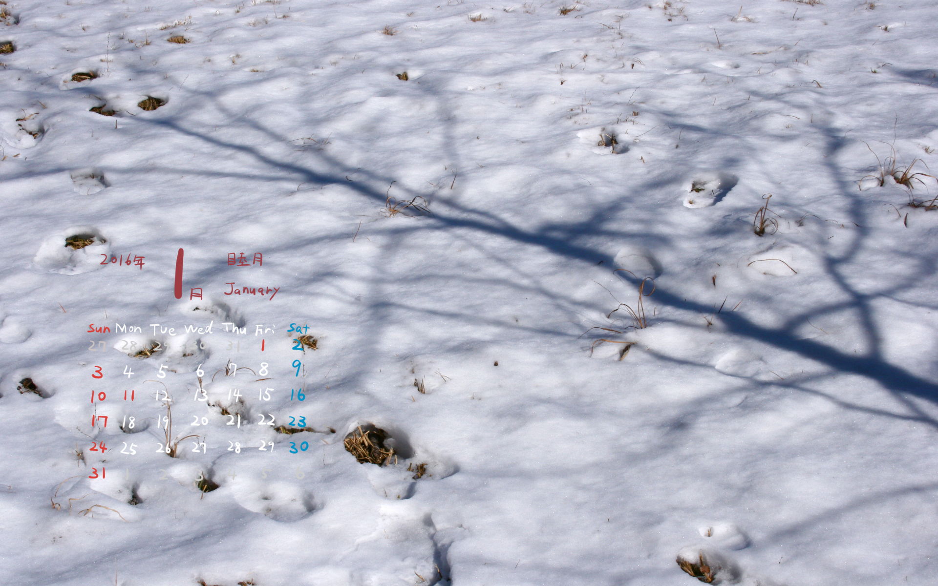 2016年1月PC壁紙(カレンダー付き)3(1920×1200)