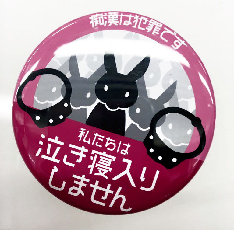 缶バッジで抑止「私は泣き寝入りしません」