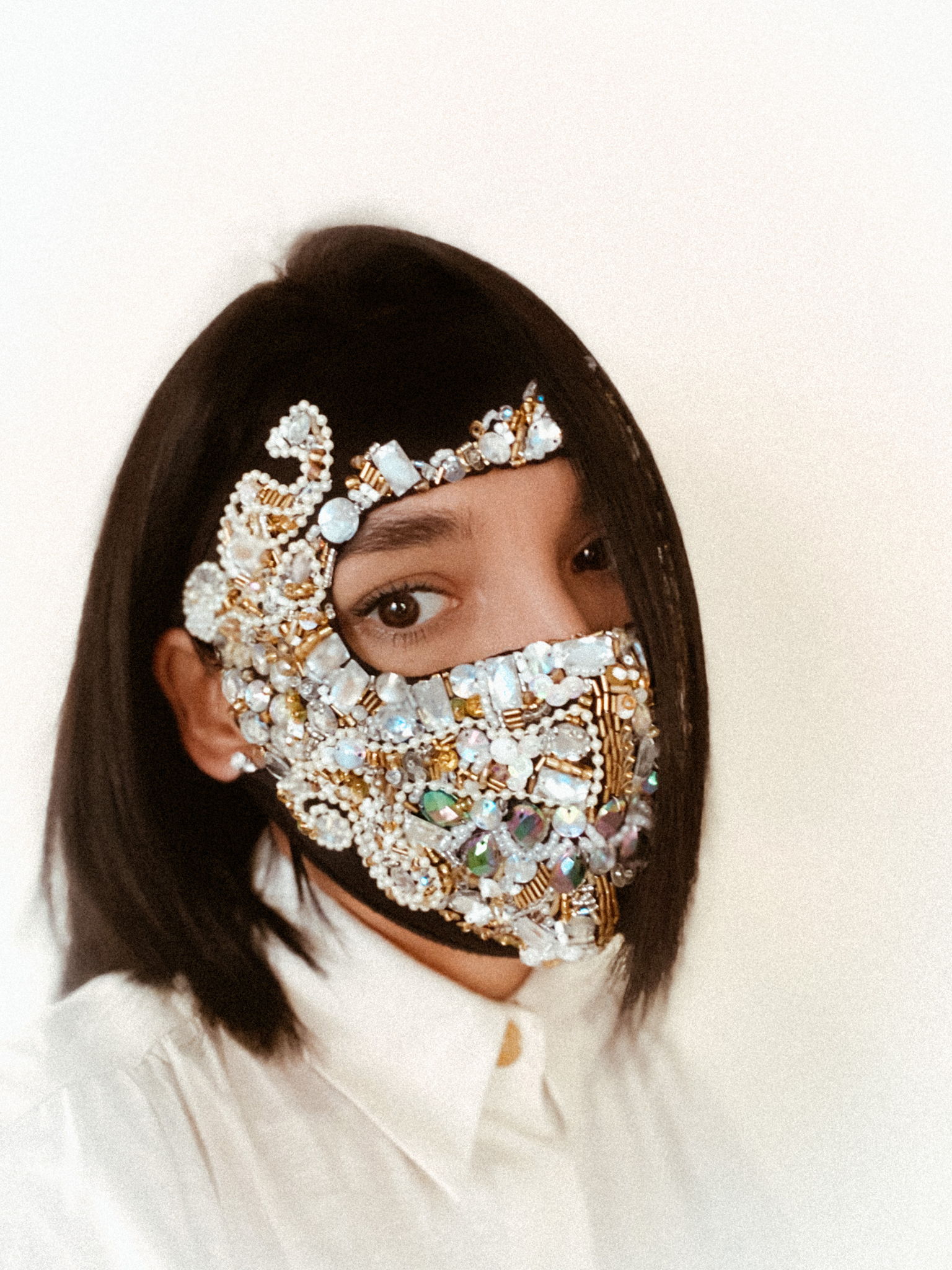This full-face mask I crest with different kind of diy materials as beads, stones and crystals.