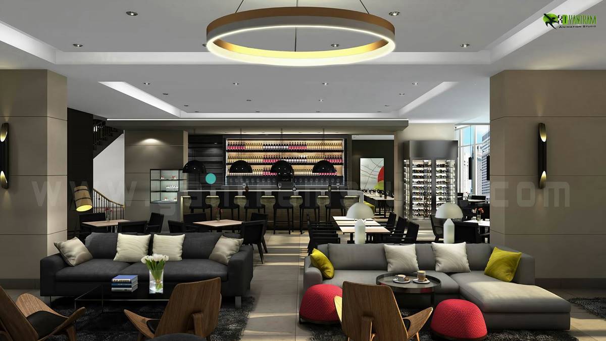Lighting is one of the most important aspects to consider when you design your bar. These Cool Lighting Ideas will surely make your hotel bar a cozy place for recreation – Rendering ideas are developed by 3D Yantram Animation Studio. Yantram 3D Interior Designers Studio offering Beautiful Bar Interior Design, 3D Interior Design, Interior Render, 3D Interior Rendering Services, 3D Interior Architectural Designers.