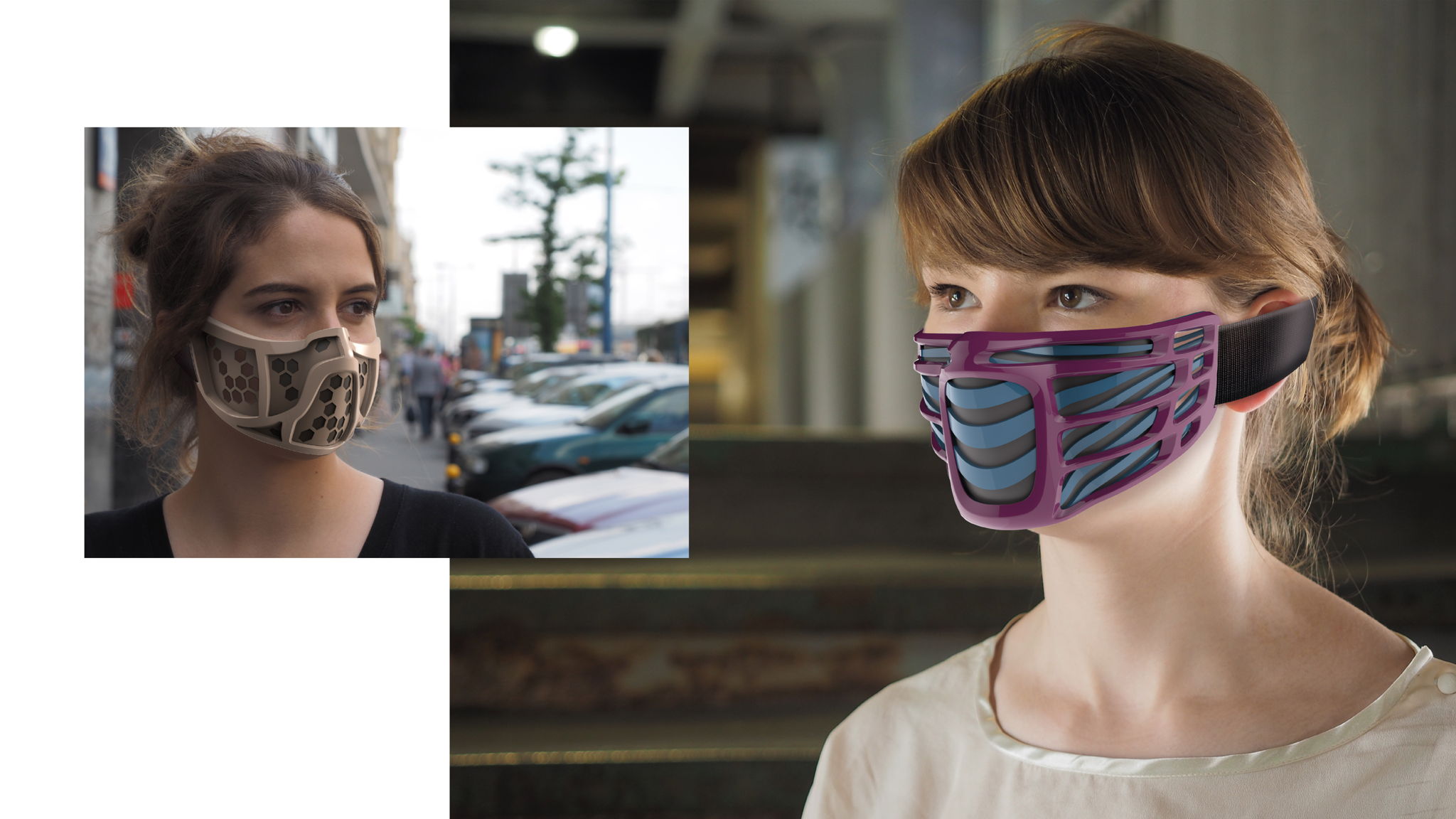 The masks are designed to become a new element of urban fashion. Users can choose from a variety of shapes and colors, and adjust it to their personal style.