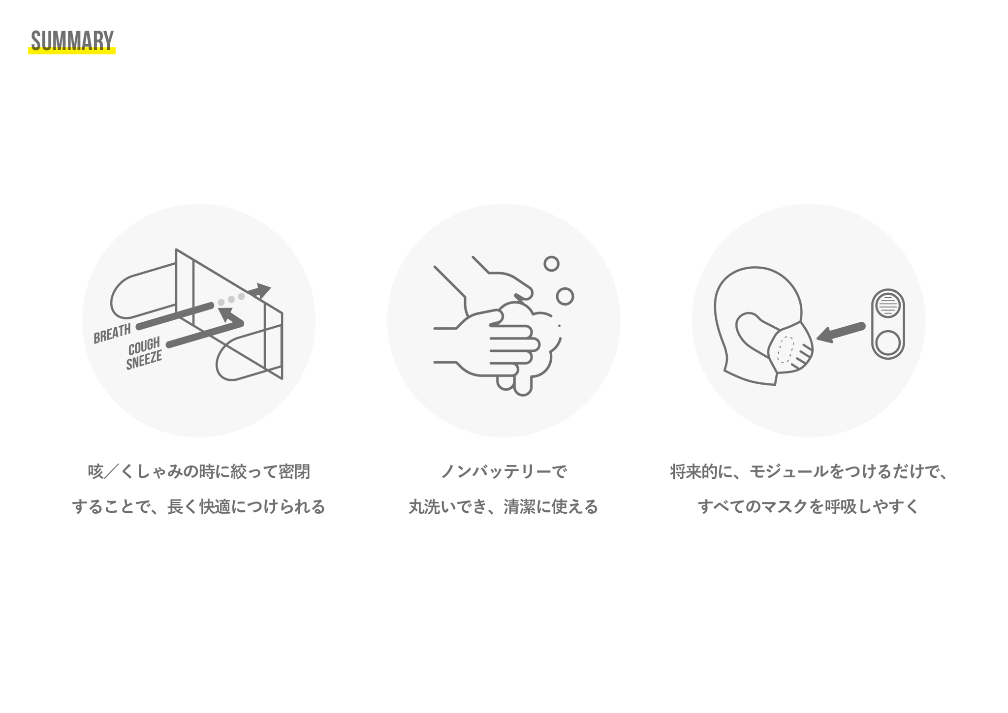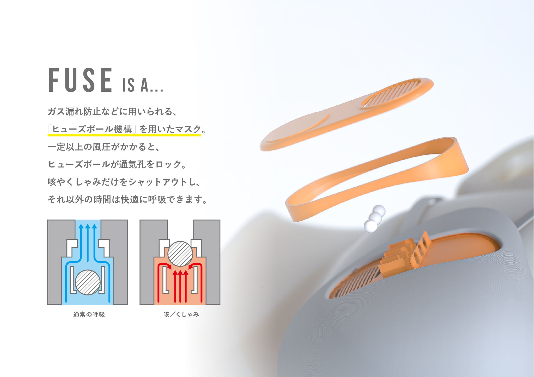 一定以上の風圧をブロックする機構「ヒューズボール」を用いたマスクです。