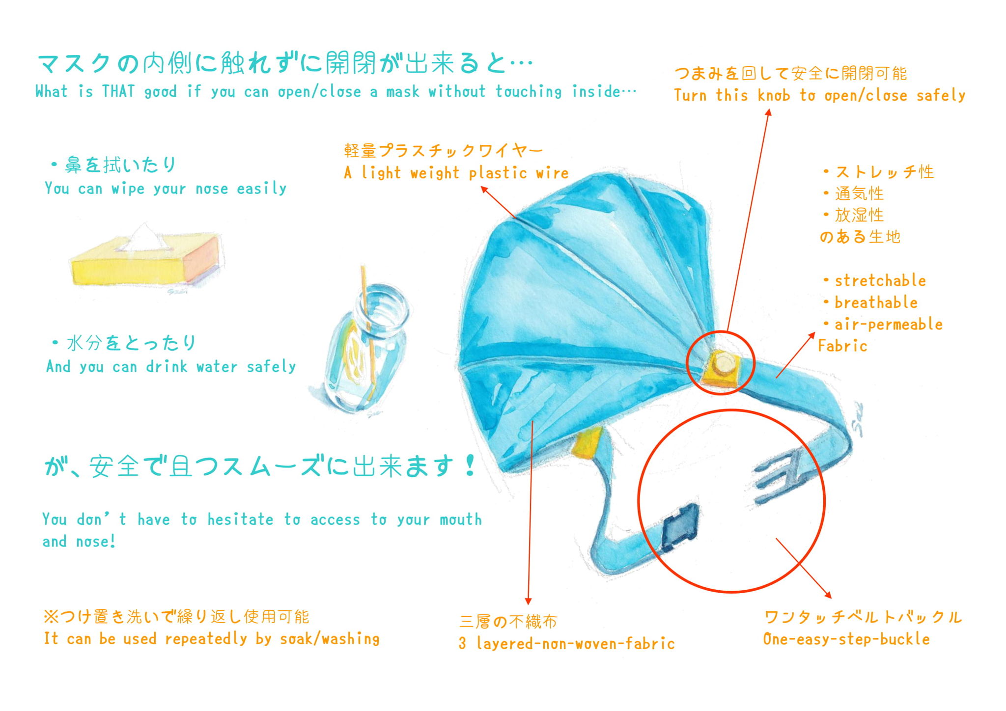 ベビーカーの幌のように開閉するマスクです