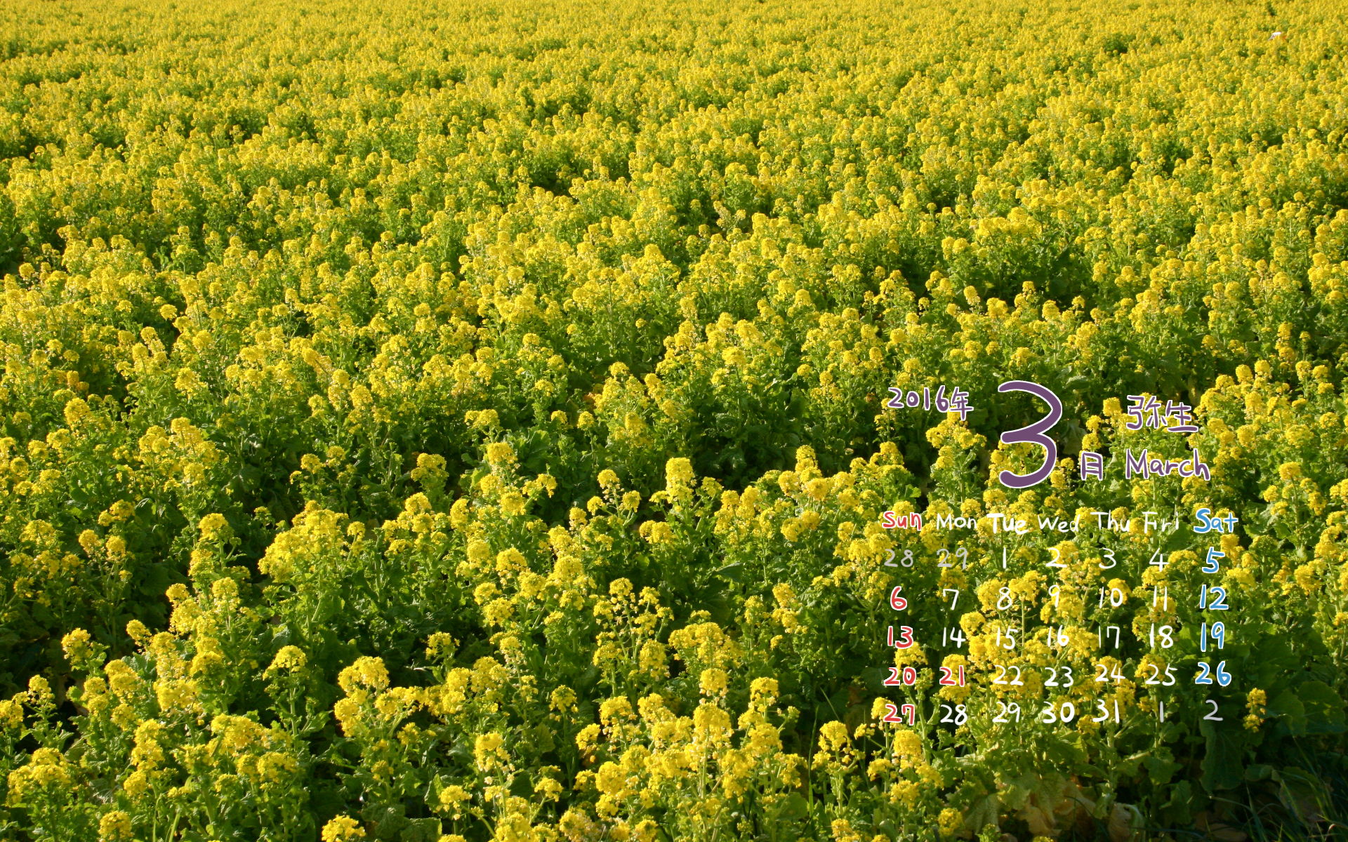 2016年3月PC壁紙(カレンダー付き)2(1920×1200)