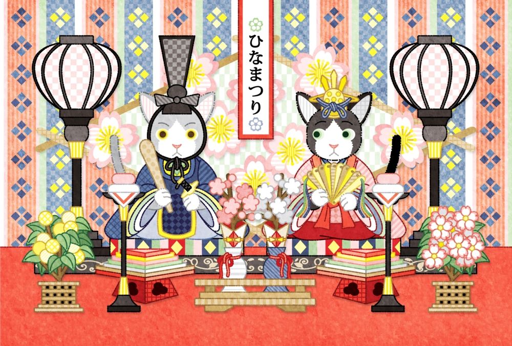 March 3rd, dolls, Doll Festival, dolls, character, illustration, spring, Japanese style, Japan, cat,