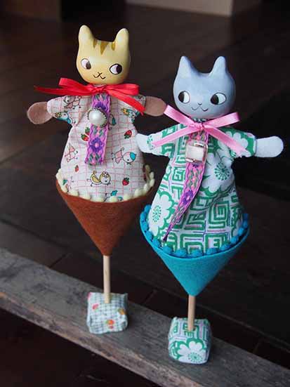 今回のテーマは猫なので、猫のシールや、新作の猫の<おどる人形>ができました!