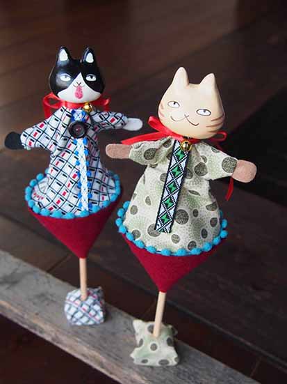 今回のテーマは猫なので、猫のシールや、新作の猫の<おどる人形>ができました!