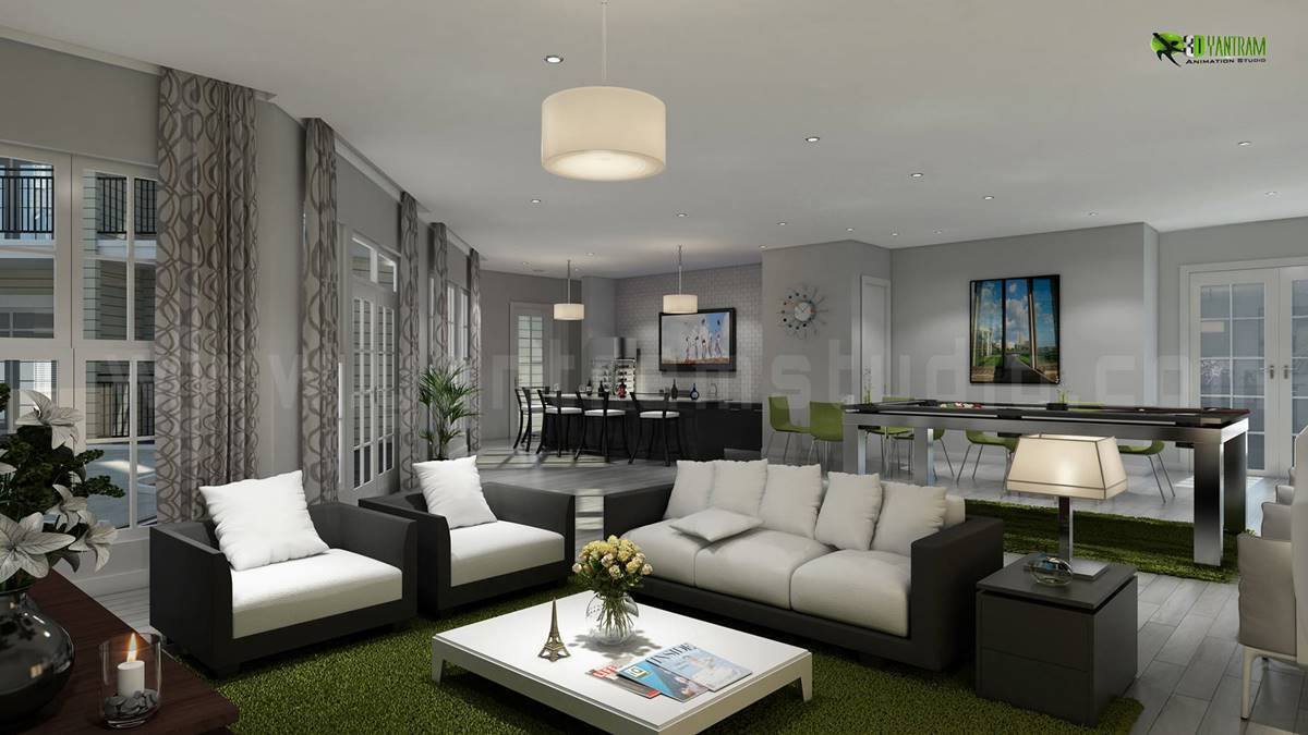 3D Yantram provides you range of ideas for your club house development, These interiors of Clubhouse will inspire you to pair of the black sofa and move into your dreams. Our studio is well amazingly using worth able software and tools that we can serve best services of rendering and design of interior. Yantramstudio offering Interior Design Rendering for Club House Living Room and Kitchen, home renovation concept, interior design images, interior concept drawings.