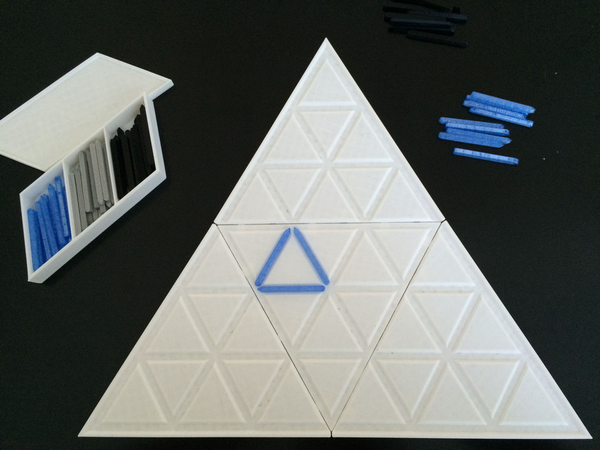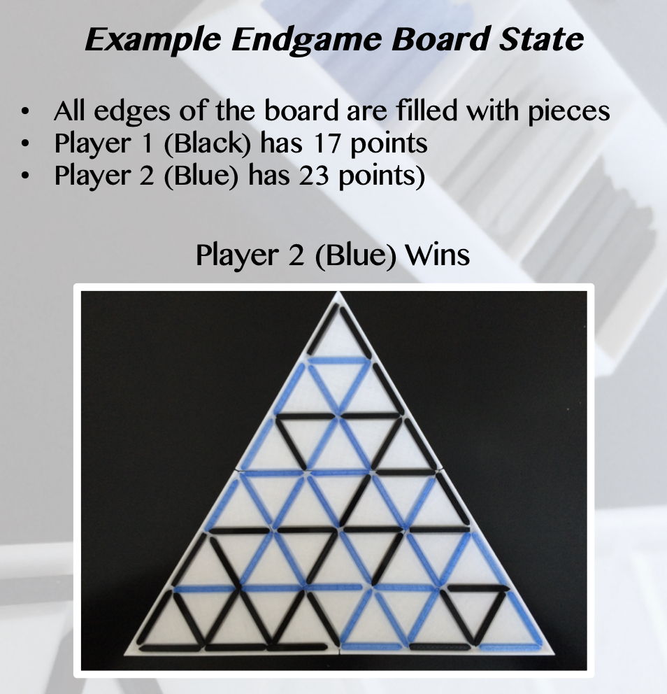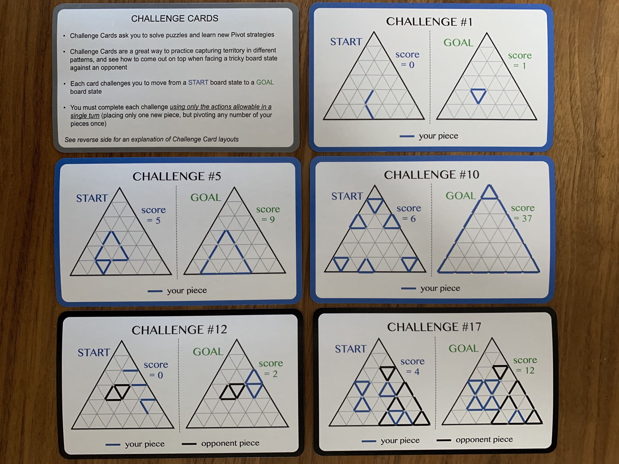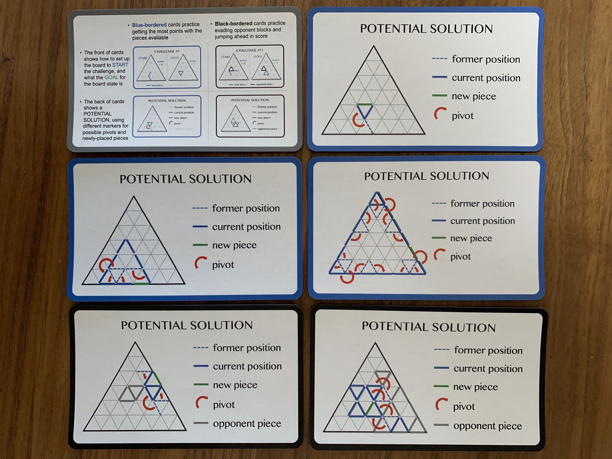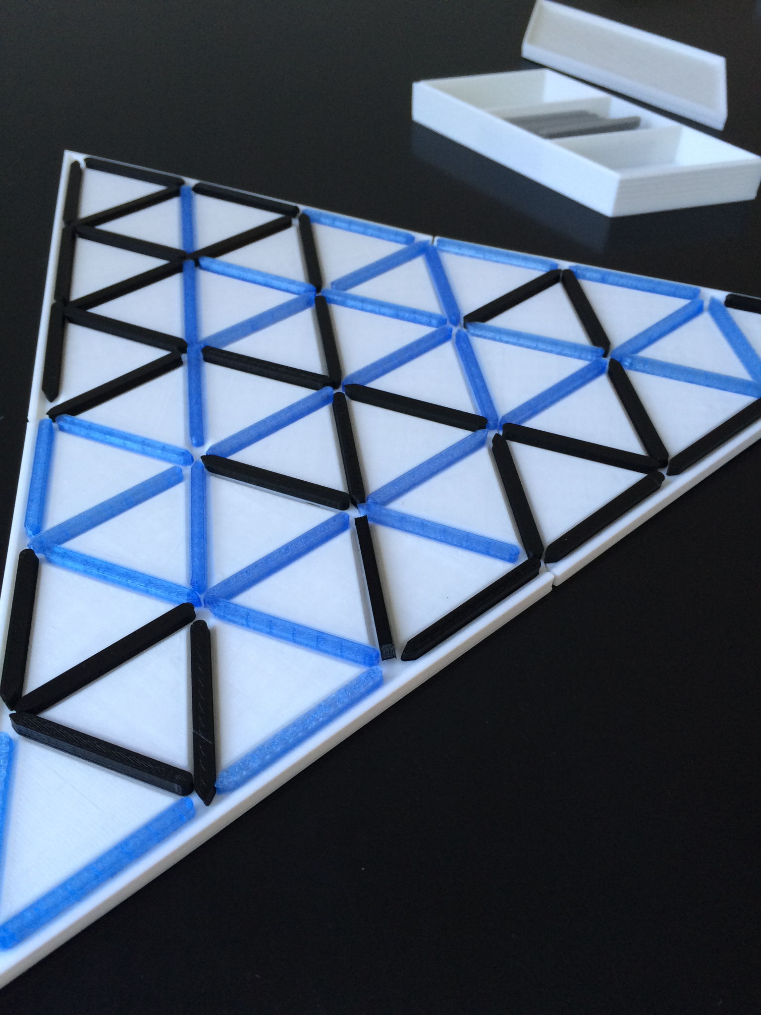 Pivot is a strategy and logic game for 2-3 players. The goal is to capture the most space on the board. Players use their pieces to create borders around their area. It only counts if it’s a triangle, but any size gets you points! The bigger the triangle, the more you score. Be careful though, the points only count at the end of the game. The pace of the game changes as the board fills up, from the endless creativity of an empty board to the challenge of clever moves to get that extra point in the endgame. The key to victory is pivoting your pieces to capture more space and interfere with your opponents’ plans along the way. The game also comes with challenges, which teach new players how to play the game, and practice spatial logic for getting out of traps and making big moves.