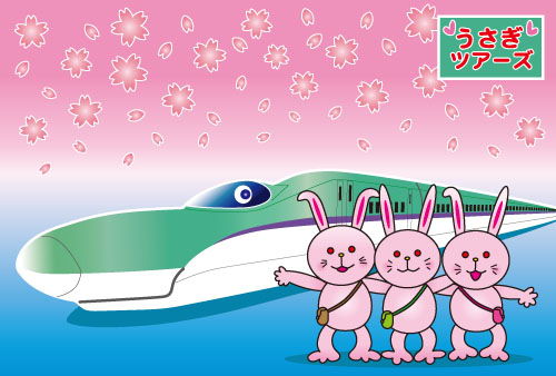 うさぎツア−ズ 北海道新幹線くんと一緒にパチリ!