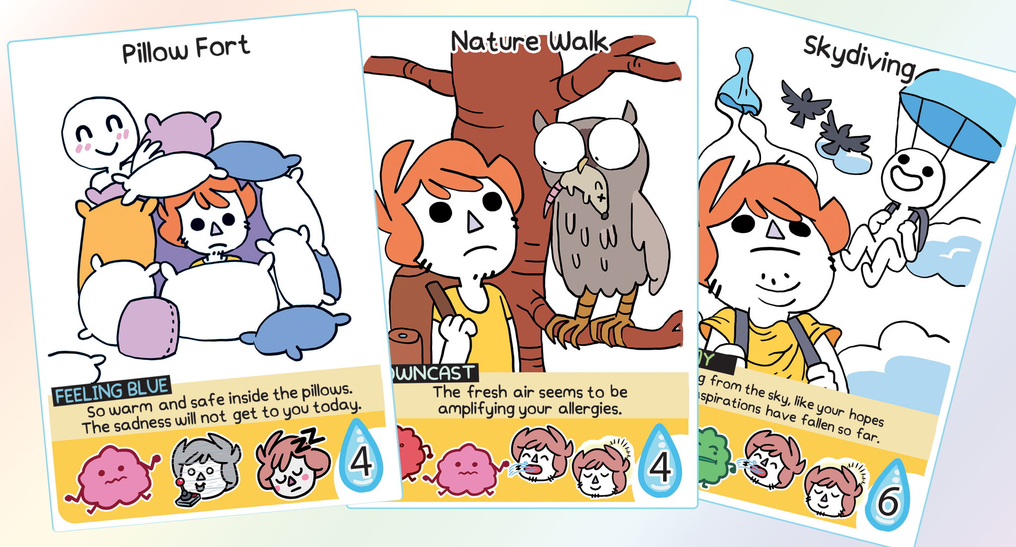 Your Friend is Sad is a hand management and card matching game where you are trying to cheer up a sad friend.