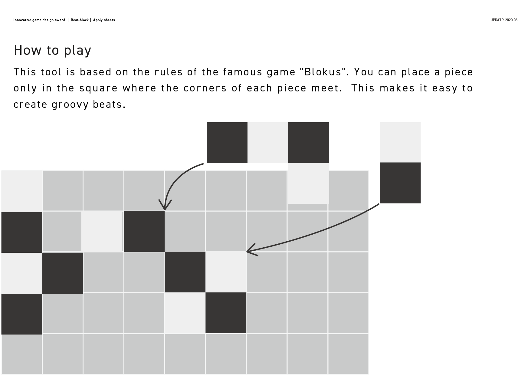 4.This tool is based on the rules of the famous game "Blokus". You can place a piece only in the square where the corners of each piece meet. This makes it easy to create groovy beats.