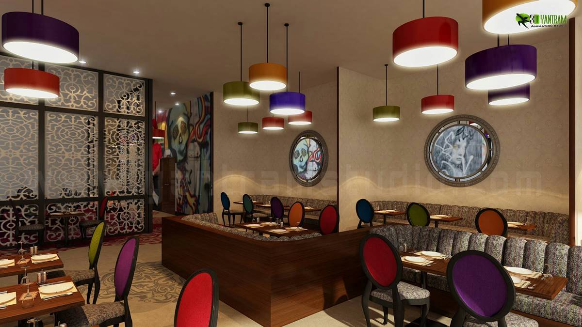 Restaurant interior design is very important, and can influence the way customers feel about the restaurant before they have even eaten there. More and more people are dining out, and the choice of different restaurants available is huge. Yantram Studio have greatest design for Night view of 3D Restaurant Interior Design Rendering, 3D Architectural Rendering Services, 3D Architectural Visualization, 3D Interior Design, Modern Interior Design.